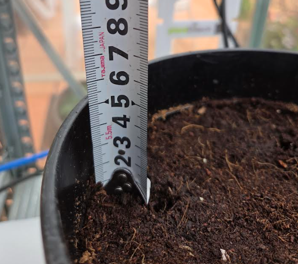 Finally, we must take into consideration that the mesh is placed 1.2 cm above the bottom of the pot, decreasing the actual volume of the potting mix in the pot: