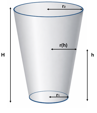 The radius of the pot increases linearly from the bottom to the top. The radius r(h) at any given substrate height is: